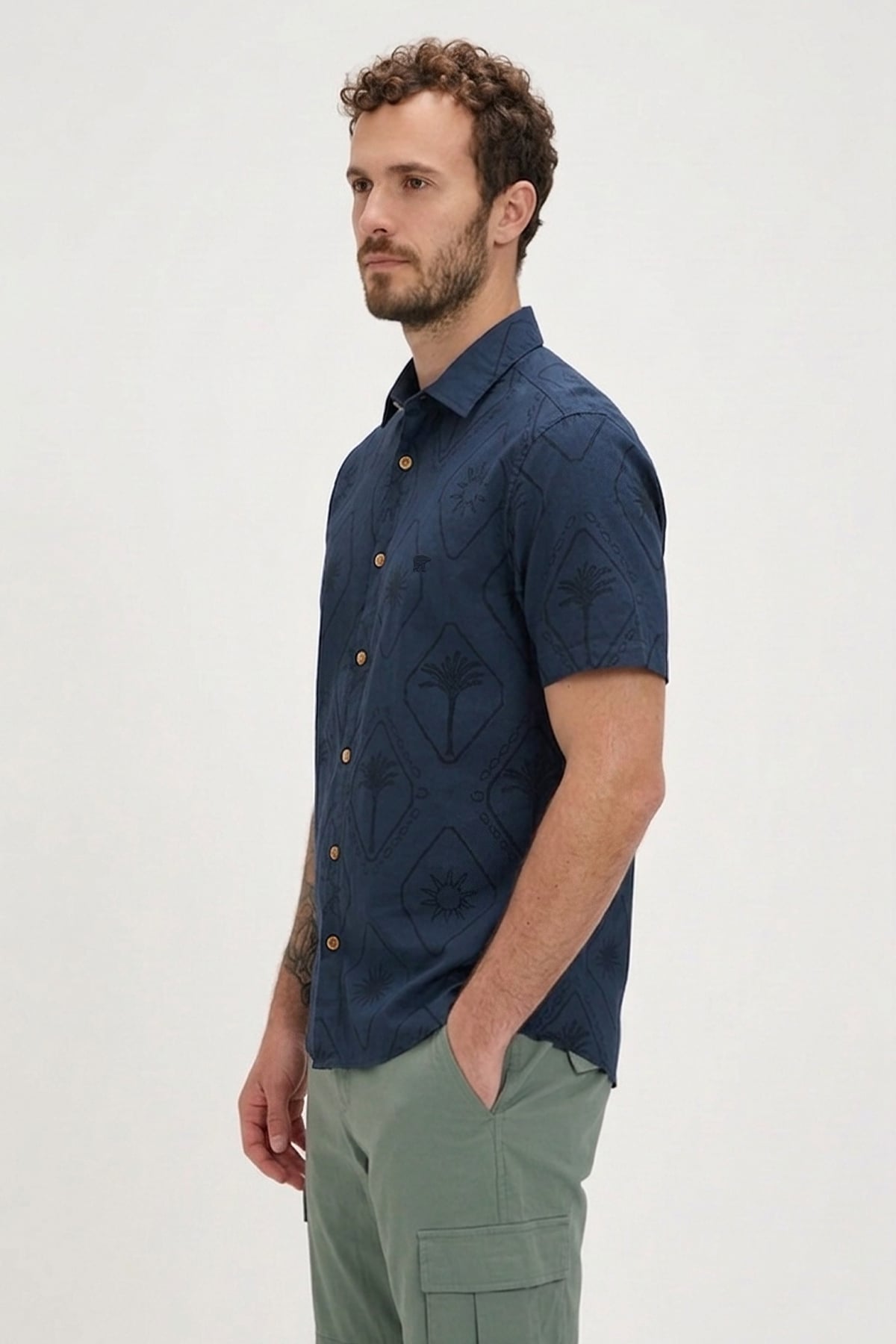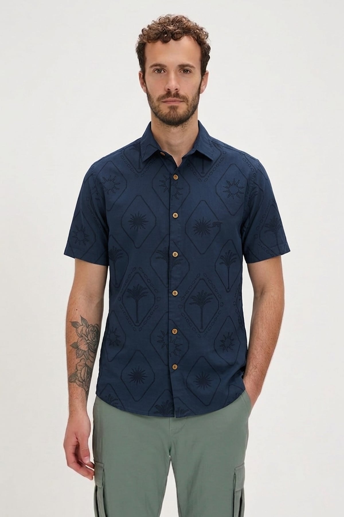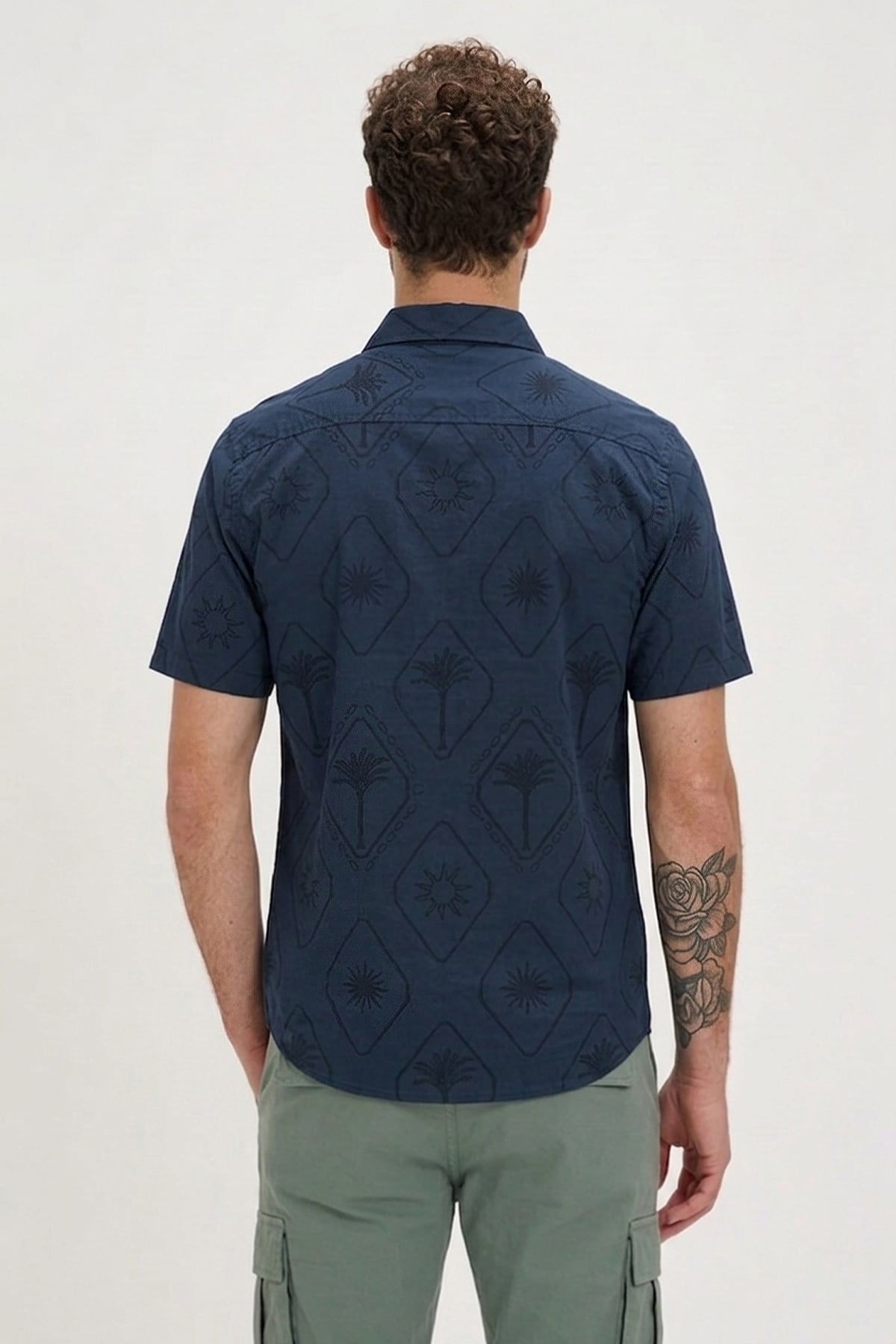 PALM RESORT SHIRT PRINTED SHIRT LACİVERT DÜĞMELİ MAN SHIRT PALM RESORT SHIRTPALM RESORT SHIRT